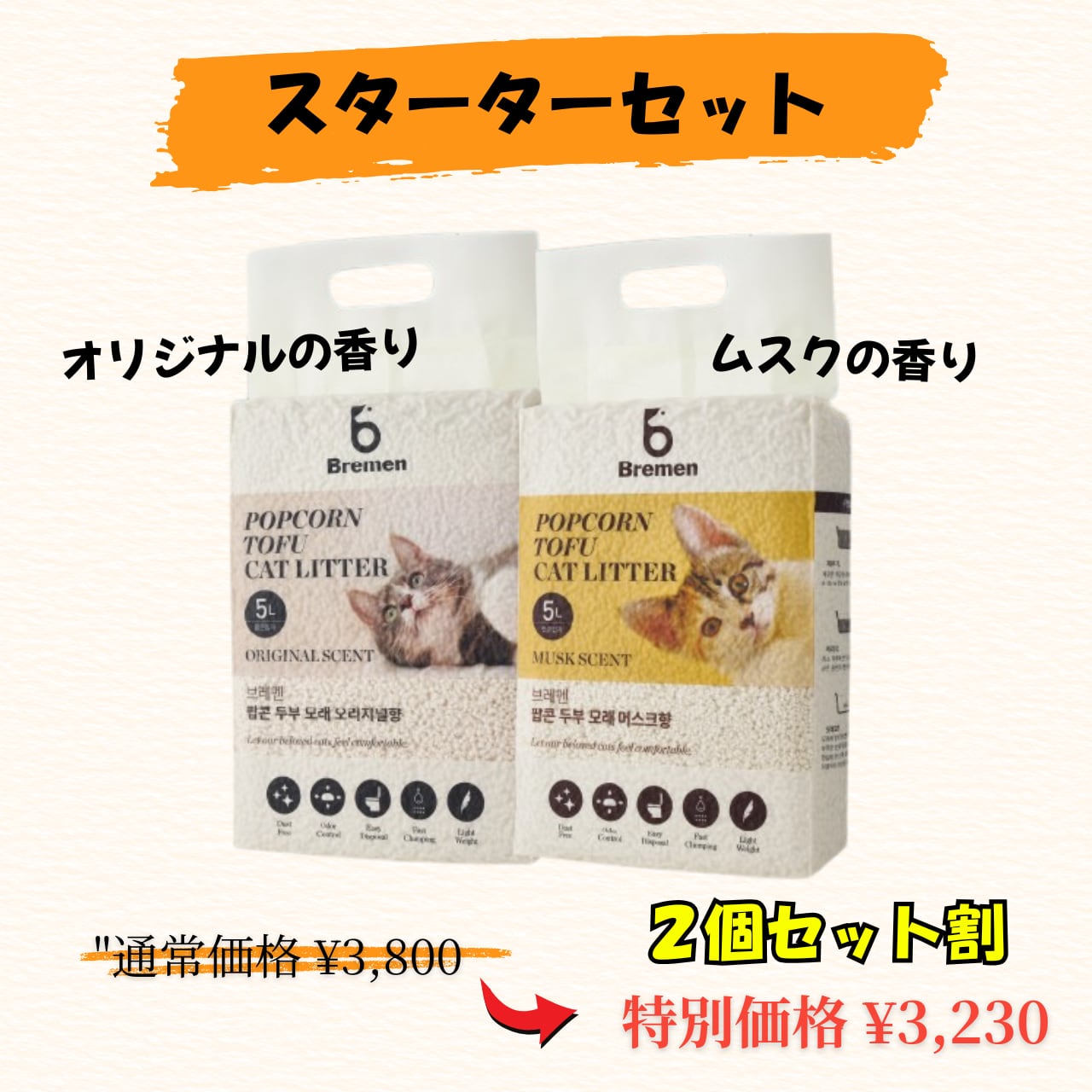 ポップコーン猫砂 スターターセット[組合せセット]
